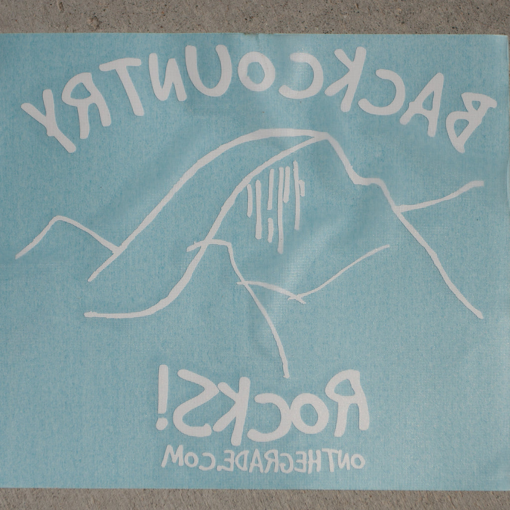 Backcountry Rocks! white cut out window sticker