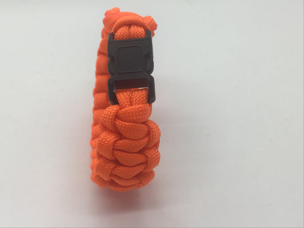 This woven paracord bracelet measures 7 inches in length and makes a great accessory for the outdoors. The paracord can be used for a variety of purposes in a survival situation. When danger calls, you have 7.5 feet of paracord at the ready for cinching logs together, tying things down, securing gear, making snares, first aid and much more. As an added benefit, the buckle as an integral emergency distress signal whistle.This bracelet is a must have for any gear set.