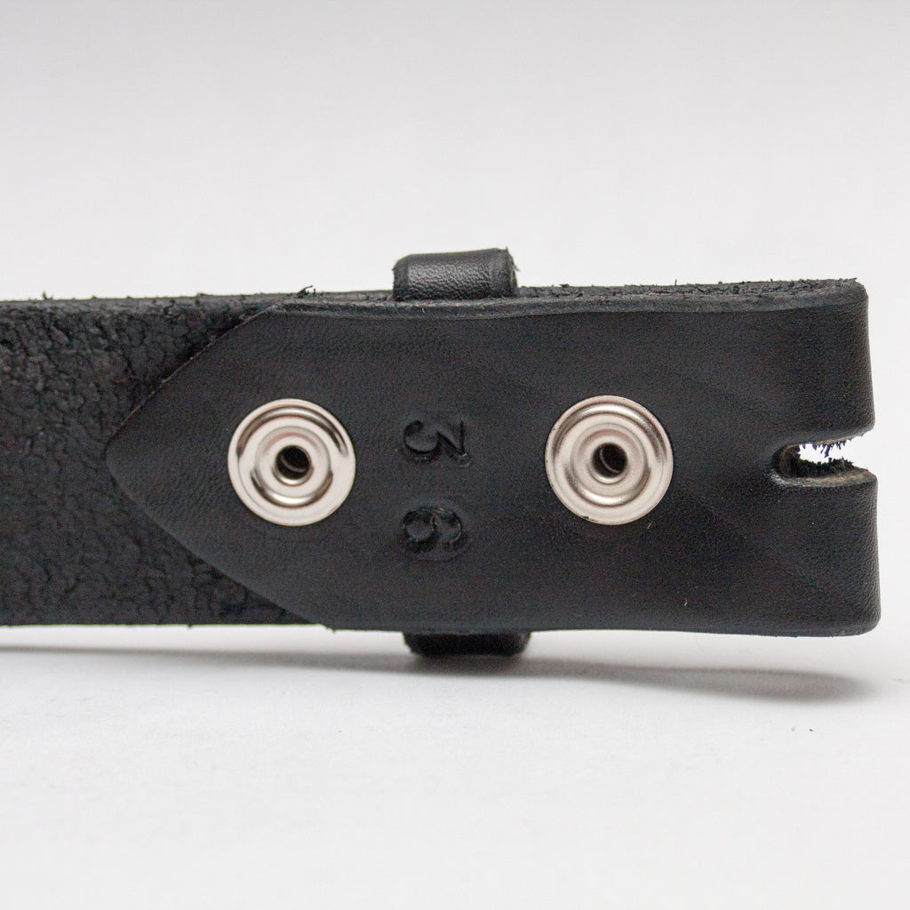 Our quality 1.5" wide black leather belt is custom made by a master leather craftsman right here in California, they are made from 8-10 oz. Latigo soft leather from U.S. steer hides. The belt is one consistent thickness (3.88mm) of leather, no layers, stitches or bonded leather here. They are crafted with hand beveled and burnished edges and have heavy duty snaps on the buckle end. If you have been looking for a belt that has outstanding weather resistance and tensile strength, look no further.